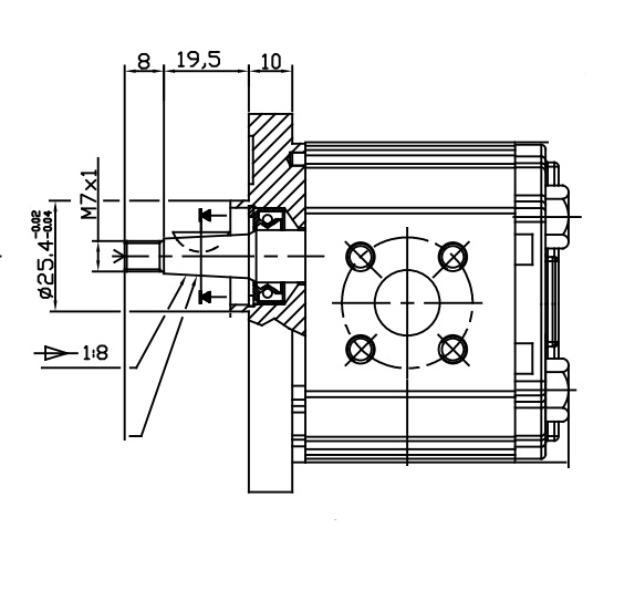- OT100 P20-D B18-P1 Tannhjulspumpe 1.80ccm Gr.1 1:8Kon Høyre
