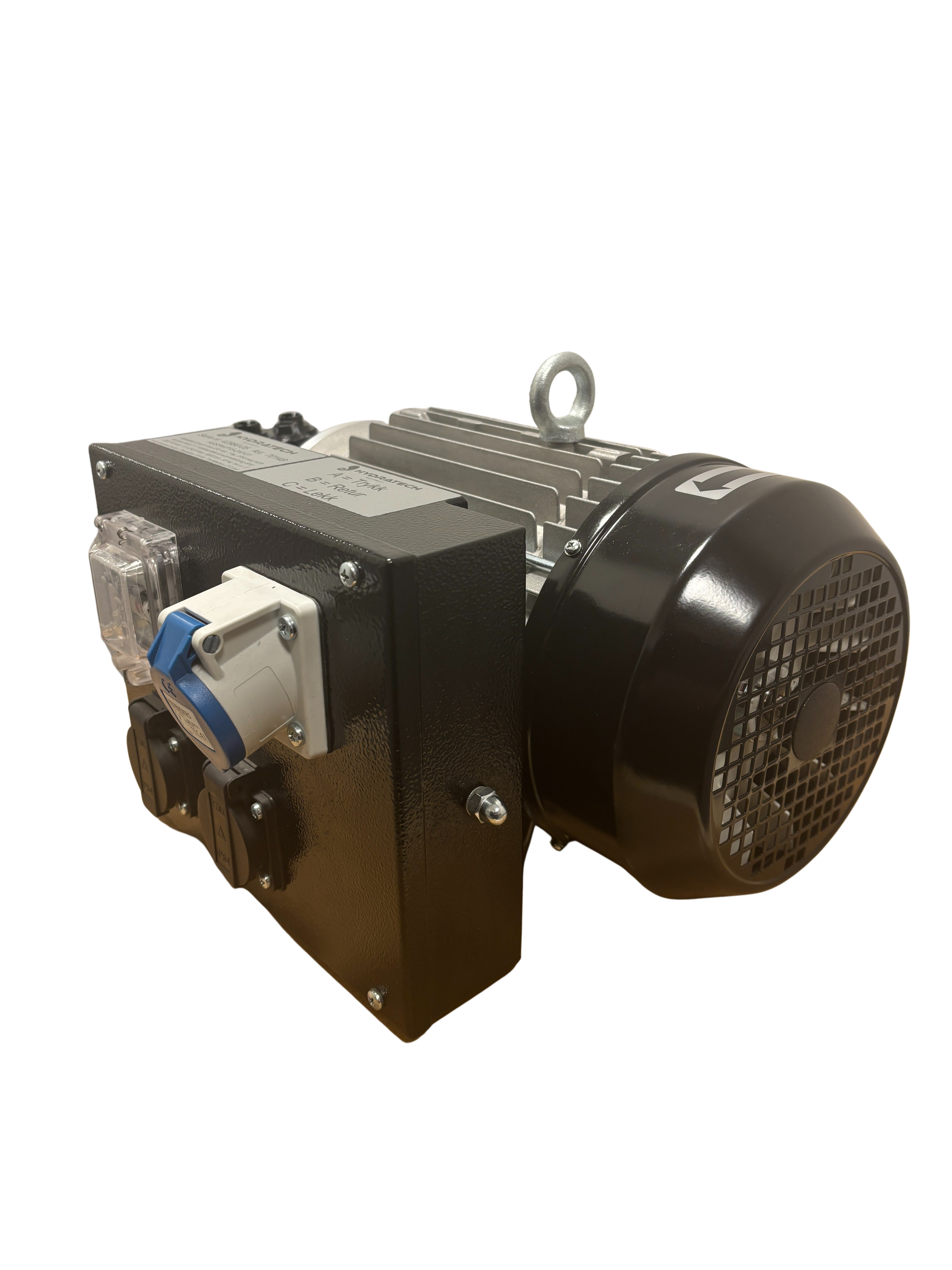 Generatoren er 2 polt IP 54 med AVR og panel med stikk kontakter og automatsikringer